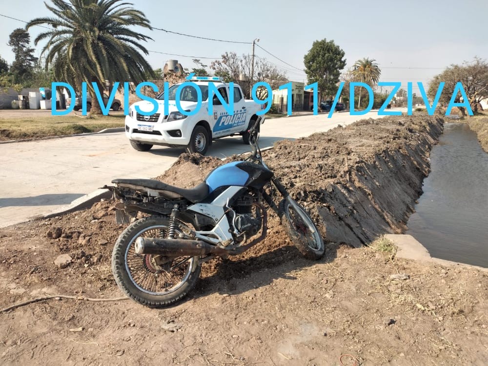 Constituida la prevención policial, verifican lo informado observando una motocicleta abandonada en el interior de un canal de desagüe.