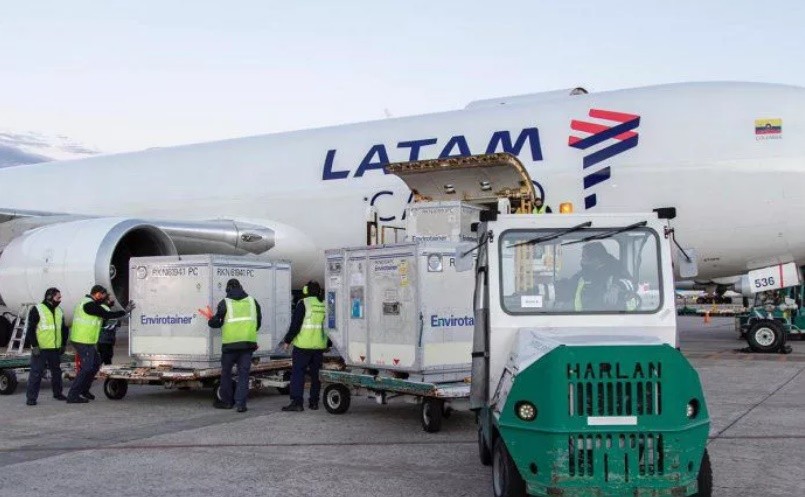 El vuelo UC1101 de Latam Cargo Colombia aterrizó a las 21.28; mientras el próximo miércoles la Argentina recibirá otras 326.400 dosis de este laboratorio.