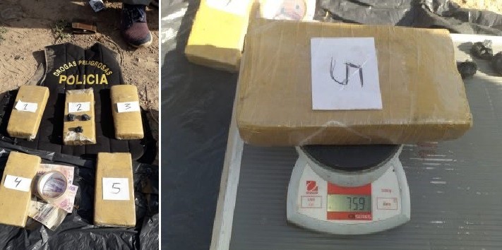 El conductor de la motocicleta llevaba los 5 ladrillos en una bolsa que guardaba entre sus piernas antes de ser demorado por los efectivos de la División Operaciones Drogas Interior Sáenz Peña a eso de las 16 hs.