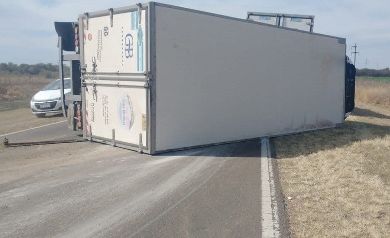 Conductor de un camión perdió el control y volcó en plena Ruta Nacional N°16