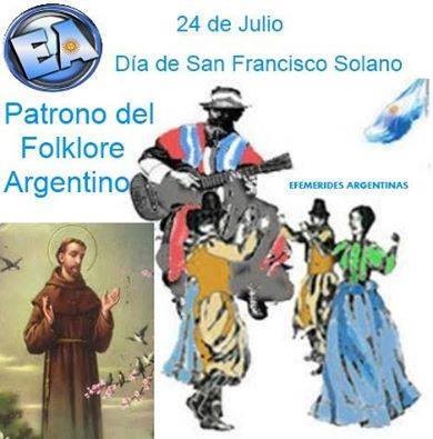DIA DE SAN FRANCISCO SOLANO,PATRONO DEL FOLKLORE ARGENTINO.