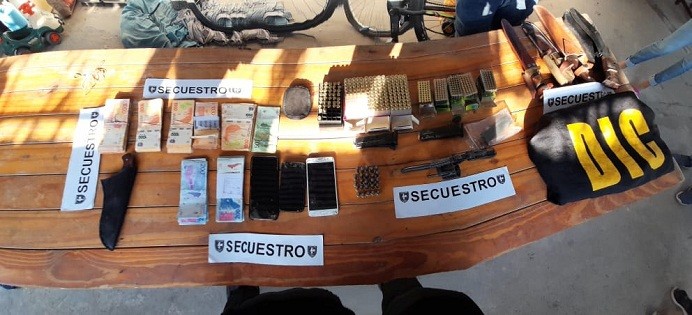 En tanto, la detención de la mujer -bajo la misma causa- se logró esta mañana luego de obtener información de que la joven estaría en el barrio Las Margaritas de Resistencia, domicilio donde residían y frecuentaban los presuntos autores. De esta manera, hoy cerca de las 8 los efectivos iniciaron tres allanamientos en el lugar. Dando como resultado la aprehensión de una mujer de 23 y la suma de 246.200 pesos, un cuchillo, dos buzos, una cartera y un pantalón jeans de interés para la causa. Asimismo, hallaron ocultos 25 cartuchos calibre treinta y ocho, 251 cartuchos calibre 22, 125 cartuchos calibren nueve mm, 4 cargadores, 1 revolver calibre treinta y dos, 38 cartuchos calibre 380, 5 cuchillos. Ante esta situación, la joven fue trasladada a la comisaria segunda por razones de jurisdicción. Fuente: DCH.