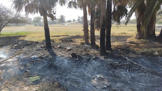 Villa Ángela: Personal de la División Bomberos intervino en el Incendio de Pasto en el Parque del Centenario