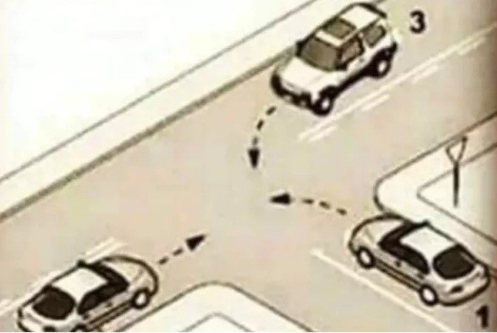 “Acá les quiero ver”, escribió el usuario Derecho en Zapatillas, junto a una ilustración de tres autos que se acercan a una esquina y están numerados del 1 al 3. Y preguntó: “¿Qué auto debe pasar primero?”