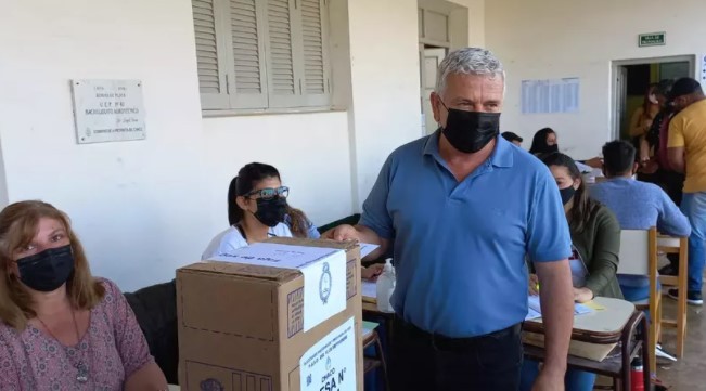 El precandidato a primer diputado nacional por la Lista 503 A Yo Cambio, Juan Carlos Polini, emitió su voto en la U.E.G.P 40 Bachillerato Agrotécnico de la localidad de Coronel Du Graty.