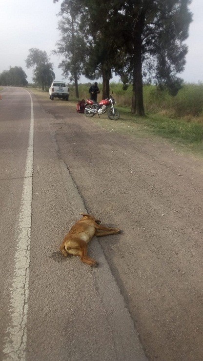 Del mismo, fue participe el ciudadano D.R.B de 30 años, domiciliado en zona rural de la Provincia de Santa Fe, quien conducía una motocicleta 125 c.c., marca Suzuki EN, color roja. Quien colisionó con un animal canino sobre la ruta nacional Nº95, perdiendo la estabilidad del rodado.