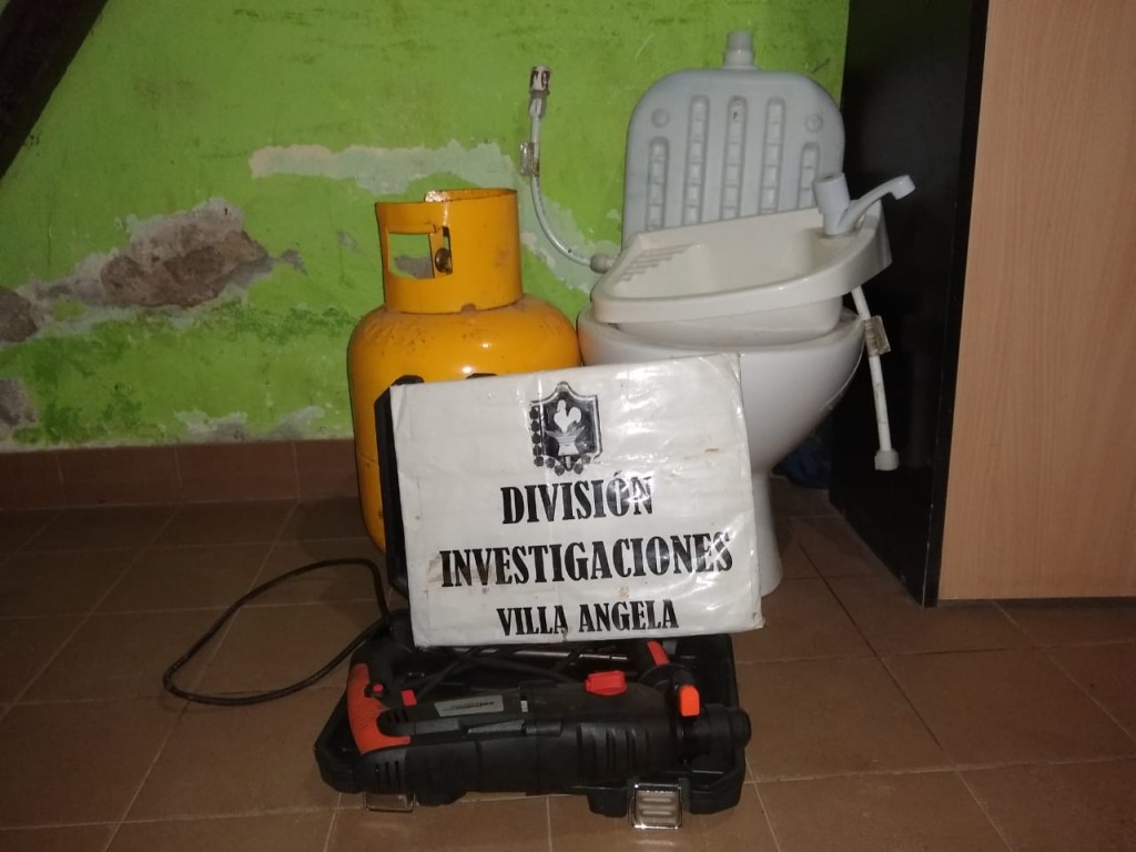 División de Investigaciones informa un robo en horas de la mañana y el recupero de la garrafa de 10kg. sustraída, inodoros, pileta plástica, mochilas y un taladro profesional.