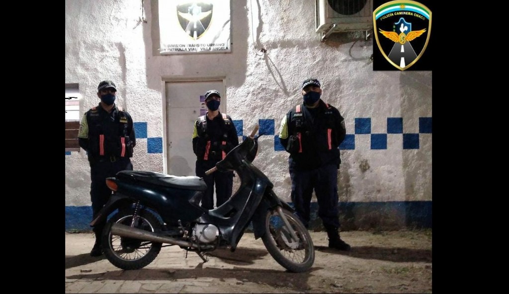 En la tarde del 25 de septiembre, siendo las 19:35 hs., la División de Tránsito Urbano y Patrulla Vial de Villa Ángela, en ocasión de estar realizando operativo de control, logra en Ruta Nacional N° 95 km 1017, el secuestro de una Motocicleta marca HONDA, modelo Biz 105 cc, color negro, guiada por F. E. G de 40 años, la cual, al momento de consultar los datos en el Padrón Unificado, presenta un pedido de secuestro de fecha 12/07/2011 a solicitud de la Cría. de Coronel Du Graty, en la causa por SUPUESTO HURTO, que damnifica a K. S. E.