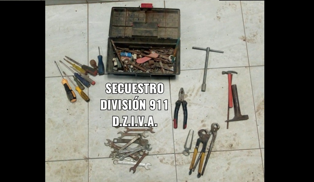El personal de la División 911 acude rápidamente al lugar y se entrevistan con el damnificado un hombre de 51 años quien manifestó que le habían sustraído desde el interior de su camioneta una caja de herramientas. Los uniformados realizan recorrida por la zona logrando ver a una persona de sexo masculino, llevar un bulto, y que al notar este, la presencia de los efectivos intenta darse a la fuga siendo atrapado metros mas adelante, se trata de un joven de 25 años quien tenía en su poder los elementos sustraídos. Siendo trasladado hasta la comisaria jurisdiccional e invitando al damificado a realizar la denuncia correspondiente.