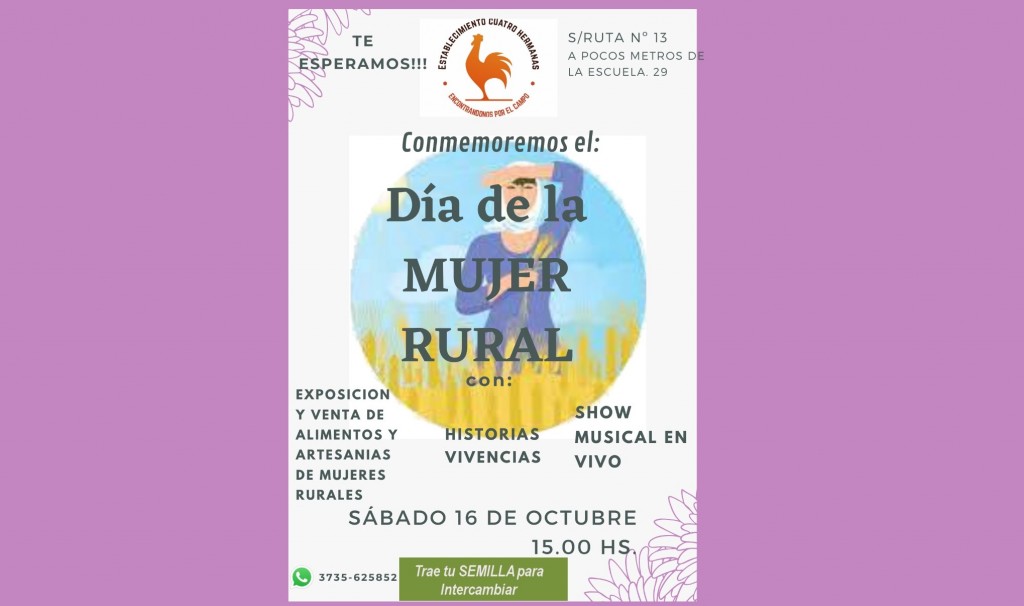 Villa Angela: SE REALIZA LA JORNADA DE LA MUJER RURAL ESTE SÁBADO EN EL ESTABLECIMIENTO CUATRO HERMANAS