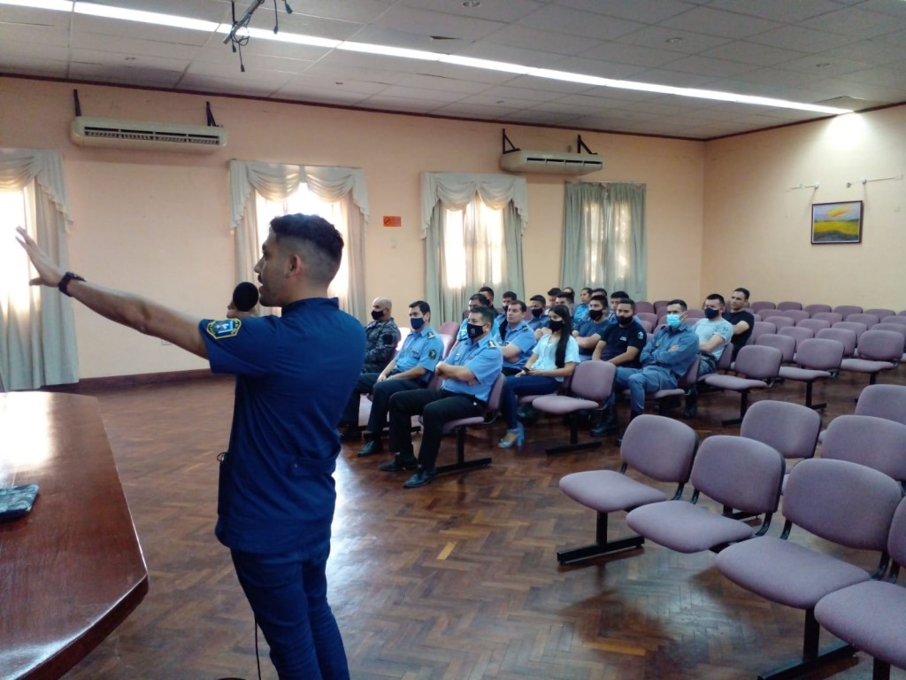 Desde el Departamento Servicio Sociales, esta mañana, se llevo a cabo en el salón Ramón Freire de la Municipalidad de Villa Angela, "Taller sobre Prevención e Identificación de Personas en Situación de Adicciones y del Sucida y Cuidados de la Salud Mental del Personal Policial". La titular del Departamento, Comisario Mayor Vanesa Aguirre, junto a un grupo de Profesionales en salud mental se encargaron de dicha Capacitación. Estuvieron presentes el Director de Zona Crió. General Norberto Domínguez, Supervisores, Jefes de Unidades y personal Subalterno de todas las Dependencias Policiales.