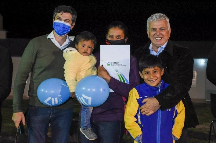 El presidente del Instituto Provincial de Desarrollo Urbano y Vivienda (IPDUV), Diego Arévalo, encabezó, junto al intendente, Juan Carlos Polini, la entrega de 20 viviendas a vecinos de Coronel Du Graty.