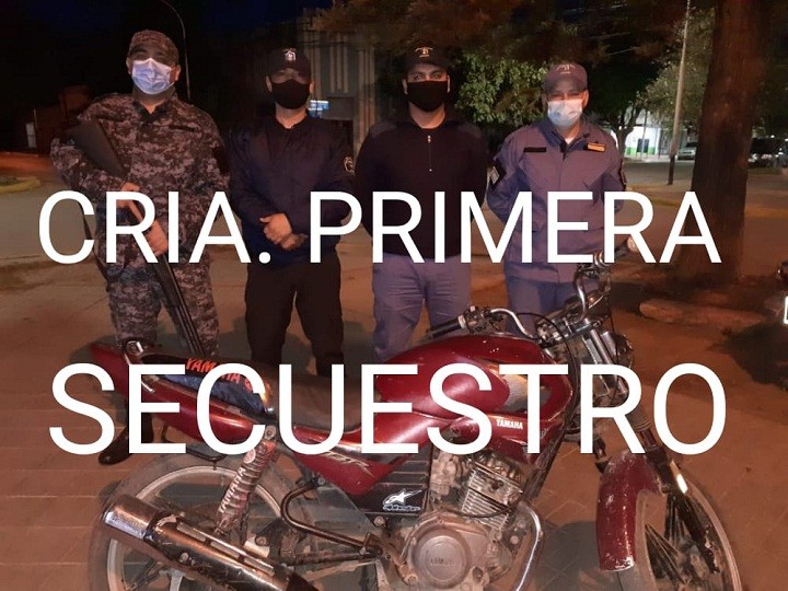 El personal de la Comisaría primera rápidamente comienzan a realizar recorrida por la zona, logrando ver a una persona de sexo masculino llevar una moto a su costado, y al notar la presencia de los agentes, intentó darse a la fuga arrojando el rodado y salir corriendo, siendo aprehendido metros mas adelante.