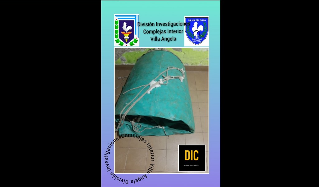 Con esta información el personal de la División de Investigaciones Complejas Villa Ángela, se constituye en el lugar donde, tras la búsqueda por el barrio, se observa a dos sujetos que se dan a la fuga del lugar, por calle Pellegrini, dejando abandonado la lona denunciada como sustraída.