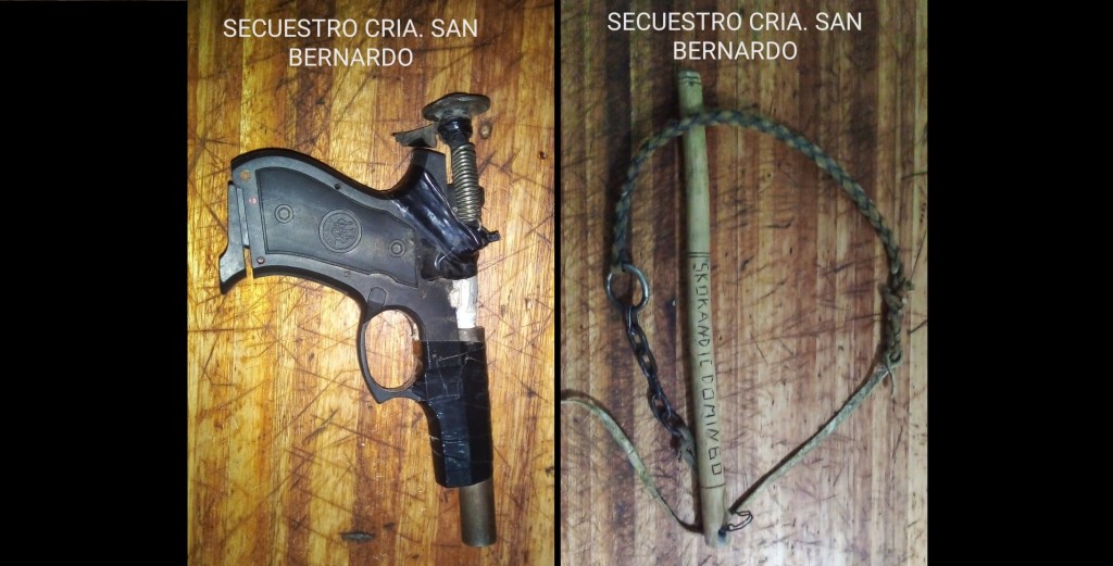Rápidamente el personal policial intervino y logró reducir a un menor de edad de 17 años que tenía entre sus prendas de vestir un arma de fuego fabricacion casera. Por otro lado los demás participantes trataron de huir por lo cual se generó una persecución donde pudieron reducir a dos jóvenes más, uno de 18 años y otro de 20 a quien se le secuestro en su poder un trenzado de mango de madera que también fue secuestrado junto con la con el arma de fuego.