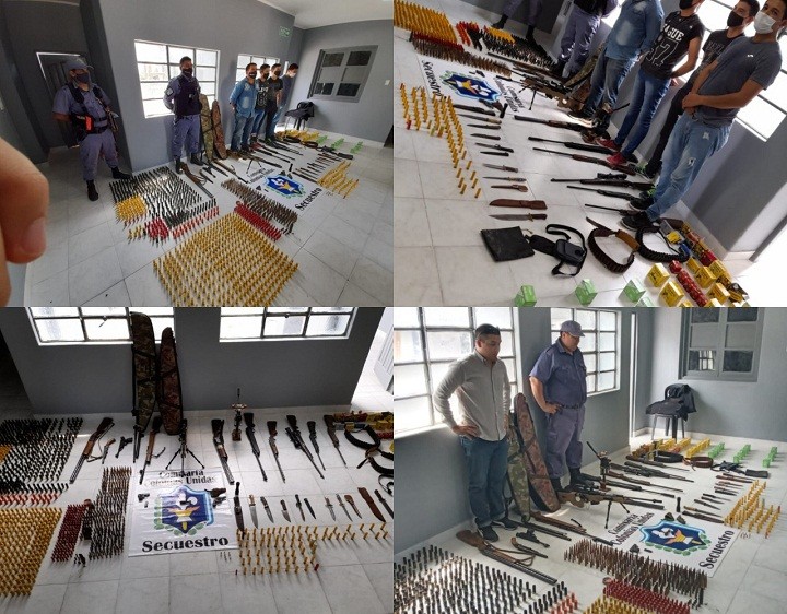 Se solicitó el allanamiento a la fiscalía en turno y con el mandamiento judicial y un testigo, los policías allanaron el domicilio ubicado por calle Rivadavia. Fue así que, en una parte de la vivienda encontraron una gran cantidad de armas. Se incautó un revolver calibre 22, que estaba vinculado a las amenazas, además secuestraron tres pistolas: una calibre 6 milímetros, calibre 14 ½ y otra calibre 6,5, cuatro aires comprimidos dos calibres 5 ½ y otro calibre 4 ½, y otro calibre 5 1/5. Un fusil fal calibre 7.65 y tres escopetas calibre 12/70, calibre 16 y otra calibre 20. Más de 1300 cartuchos de distinto calibre. Además de armas de fuego, secuestraron 2 machetes, 2 cuchillos, un puñal y una bayoneta, correajes y fundas para armas. Finalmente, el propietario de 58 años, fue notificado de su aprehensión por la causa “Supuesta Amenazas Con Arma de Fuego en Contexto de Violencia de Genero”, puesto a disposición de la Fiscalía de Investigación Penal N° 1 de San Martín. Fuente: DCH.