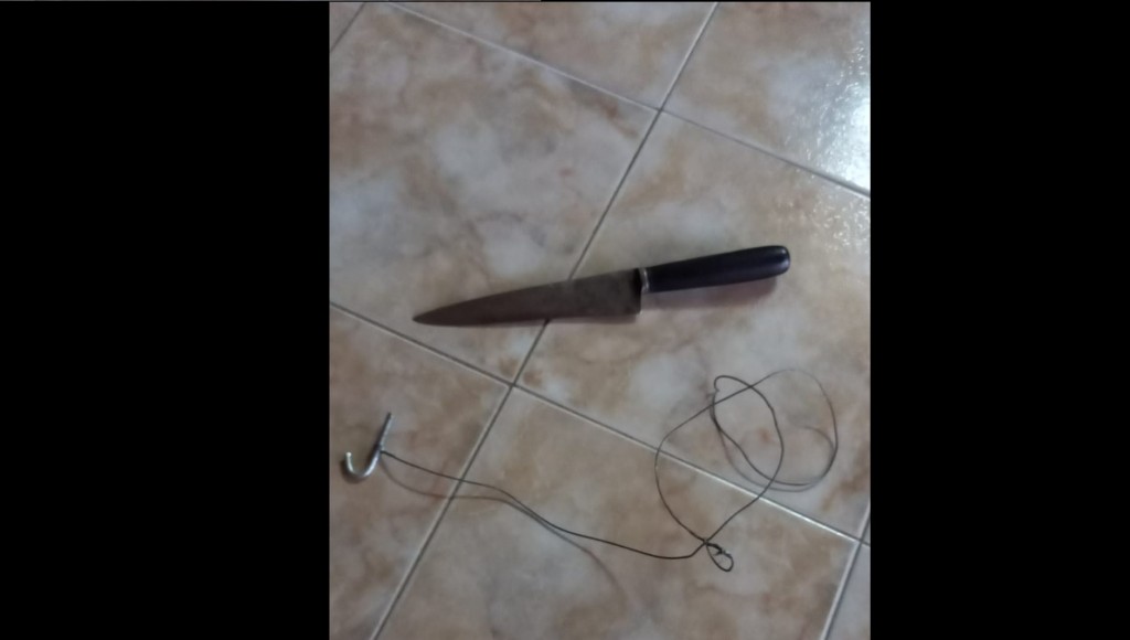 El personal se dirige hasta el lugar, se entrevistan con un ciudadano de 60 años quien manifestó que fue agredido por dos hombres, resultando también lesionada su mujer que se encontraba en el lugar. Los funcionarios policiales logran identificar y aprehender a estos violentos de 56 y 32 años, a quienes se les secuestro un cable de acero y un cuchillo de 30 cm de hoja.