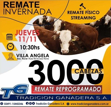 Villa Ángela: TRADICIÓN GANADERA INFORMA SOBRE LA REPROGRAMACIÓN DEL REMATE DE INVERNADA