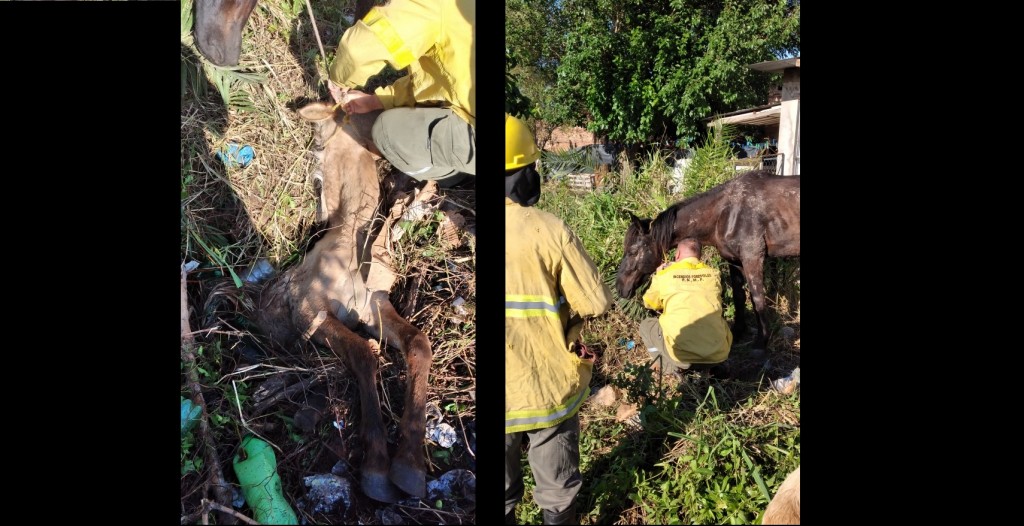 En la mañana de este lunes 8 de noviembre, a las 08:15 hs. el personal de la División de Bomberos Villa Ángela, tomó conocimiento mediante llamado de la ciudadana S., D., de que un animal equino yacía en un pozo sito por Av. del Trabajo N° 150.