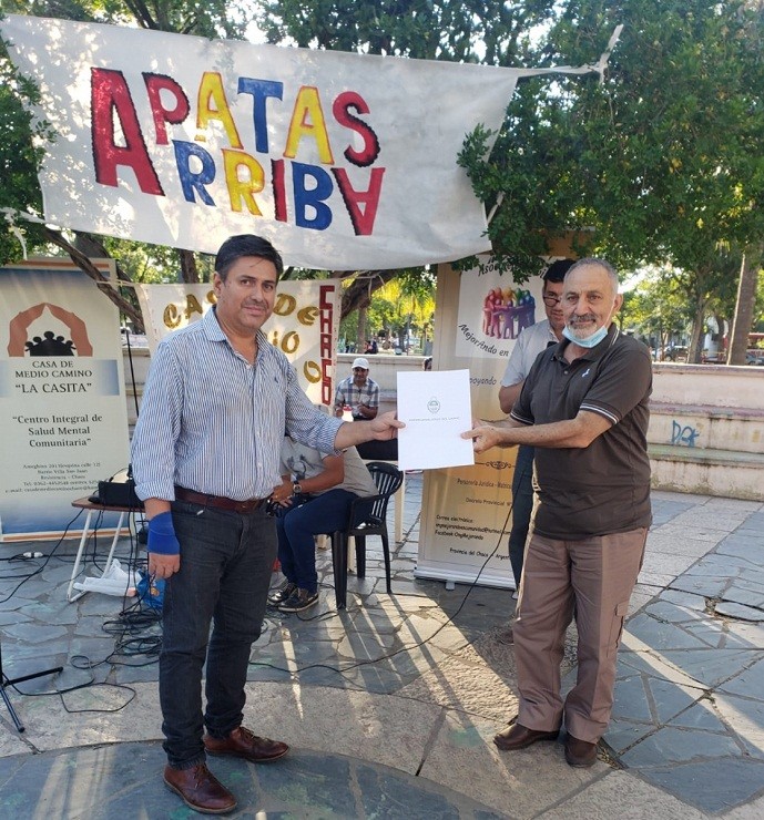 A través del Área de Discapacidad, la Legislatura estuvo presente el pasado miércoles en el 11° Encuentro Patas Arriba "Tenemos Ley. Exigimos dignidad" que se realizó en la plaza 9 de Julio y de la cual participaron dispositivos comunitarios de salud mental. Se trata de un encuentro artístico y deportivo que tiene por objetivo visibilizar la plena inclusión de las personas con padecimiento mental e instalar en la escena pública la problemática del encierro crónico.