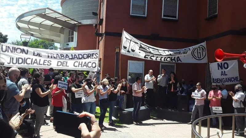 El Sindicato de Empleados Judiciales del Chaco, la Unión de Trabajadores Judiciales del Chaco y la Asociación Judicial del Chaco resolvieron en forma conjunta convocar a un paro general de actividades este viernes 26 de noviembre, con retiro de los lugares de trabajo a partir de las 11, y concentración en el playón de las Torres de Juzgados Civiles, en avenida Sarmiento y Laprida, en rechazo al desenganche salarial en el Poder Judicial.