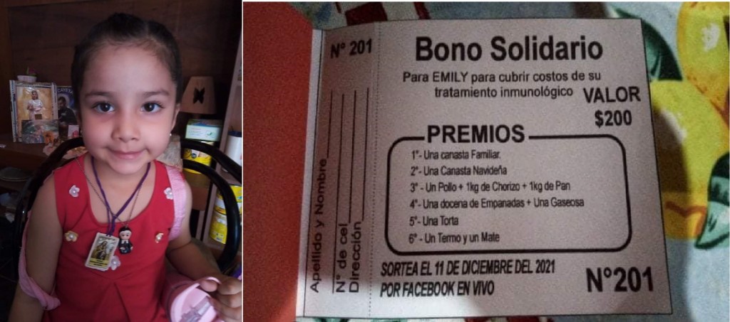 Porque por semana le están cambiando la medicación. Por ejemplo, ahora está con broncoespasmo, la semana pasada estaba con otro tipo de alergia, entonces le van tratando según lo que ella tiene en el momento. Hace cuatro meses que viene con tratamientos de diferentes tipos de medicamentos para el sistema inmunológico, y en el último análisis, salió que tiene lo mismo, no levantó nada…”, refirió Noemí, a que Emily a pesar de realizar diferentes tratamientos, no puede mejorar sus defensas inmunológicas.