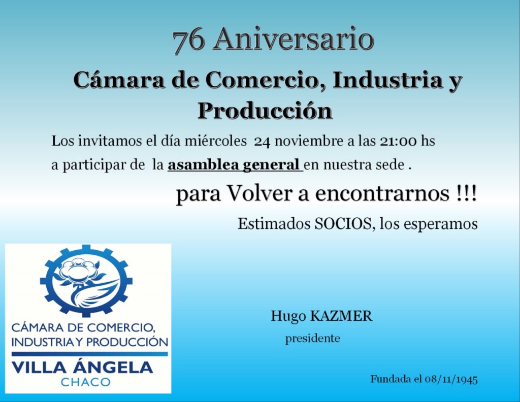 Villa Ángela: EN SU 76° ANIVERSARIO LA CÁMARA DE COMERCIO REALIZA SU ASAMBLEA GENERAL Y ELIGE NUEVAS AUTORIDADES