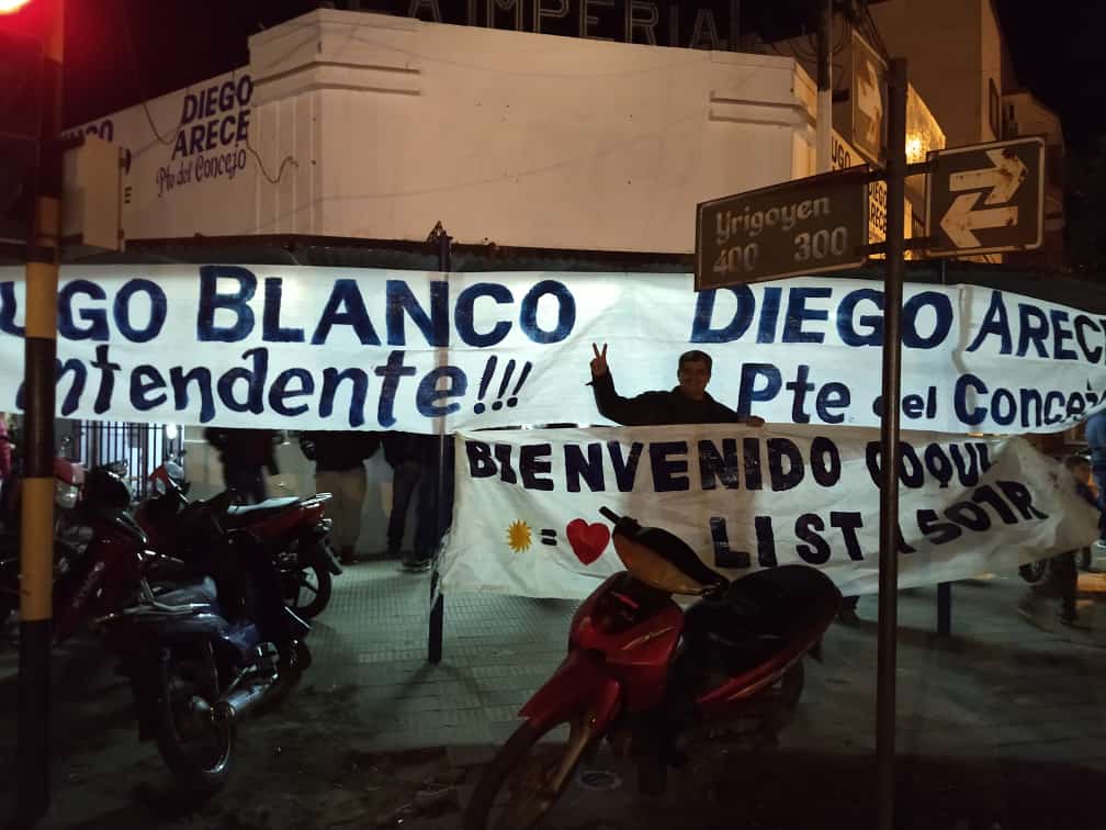 El candidato a Intendente Hugo Blanco, con casi la totalidad del escrutinio provisorio terminado, festeja en su Bunker la arrolladora victoria de Capitanich