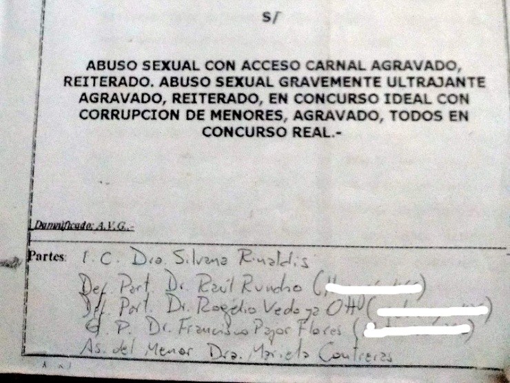 Roda llega acusado por el delito de “abuso sexual con acceso carnal agravado, reiterado; abuso sexual gravemente ultrajante agravado, reiterado, en concurso real con corrupción de menores, agravado, en concurso real”.