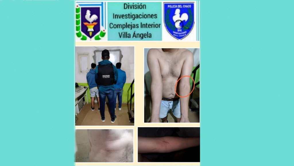 Informado el Fiscal en turno, dispuso la inmediata detención de los hermanos D., procediéndose a su búsqueda y conducción de S. R. D. alias PELO, de 37 años, y su hermano S. E. D. alias PITO de 38 años. Examinados por el médico policial informó que S. D. presenta escoriaciones en el abdomen en el lado derecho y pliegue del brazo izquierdo, lesiones de reciente data compatibles con cintazos.