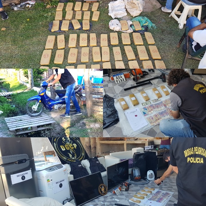 Asimismo, en una casa ubicada a escasos metros se pudo detectar la cantidad de 46 envoltorios tipo ladrillo conteniendo lo que las pruebas de campo arrojaron como resultado Marihuana con un peso de 42 kilos 279 gramos, dos macetas con plantas de cannabis sativa y 3 motocicletas encontradas de las cuales una de ellas, presentaba pedido de secuestro activo por robo a solicitud de Comisaría Undécima siendo la misma una Honda Wave 110 cc., color azul.