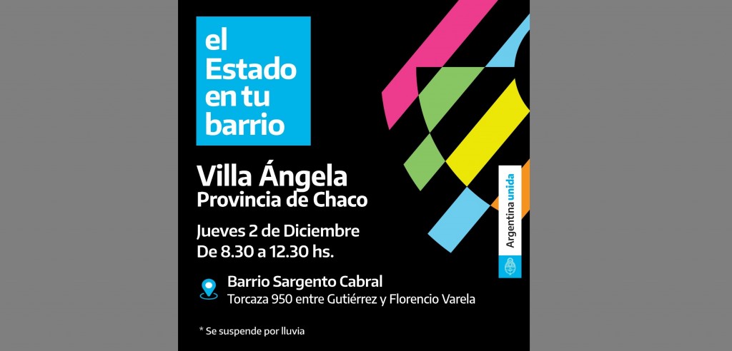 Villa Ángela: ESTE JUEVES “EL ESTADO EN TU BARRIO” ESTARÁ EN EL B° SARGENTO CABRAL