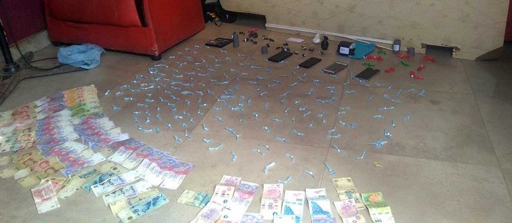 Las investigaciones realizadas por personal de la Fuerza, permitieron detener a cuatro personas que se dedicaban a la comercialización de estupefacientes. Durante el registro, se decomisaron 527 dosis de cocaína fraccionadas para la venta, frascos de cogollos y 10 plantas de marihuana. 300.000 pesos, balanzas de precisión, 13 teléfonos junto a elementos de interés para la causa. Como resultado de un año de investigación, los funcionarios desarticularon los puntos de venta de drogas.