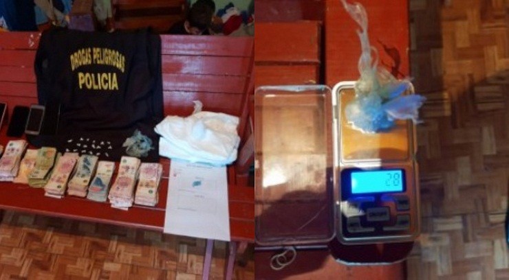 Es así que, los agentes se dirigieron hasta el lugar mencionado y con el mandamiento judicial en mano procedieron a realizar la diligencia. En la casa lograron secuestrar 2,8 gramos de cocaína, 446.000 pesos en efectivo, celulares y recortes de polietileno.