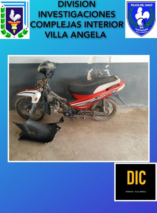 El personal de la División Investigaciones Complejas Interior Villa Ángela, tomo conocimiento a través de fuentes de identidad reservada que un sujeto conocidos como A.S., había sido visto en horas de la tarde a bordo de una motocicleta color blanca con roja, a un sujeto conocidos por su amplio prontuario delictivo estando en tratamiento psicológico por su adicción a las drogas.