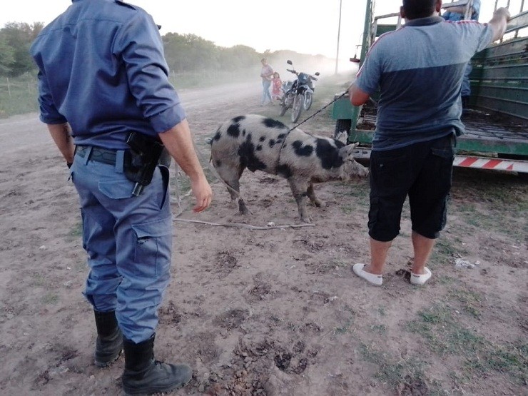 El ciudadano V.G.J., a fin de evitar inconvenientes judiciales hizo entrega en forma voluntaria del porcino denunciado. Y consultado al Fiscal de Investigaciones Nº3 a cargo del Dr. Sergio Ríos,  dispuso que el  animal previa acreditación de propiedad, sea entregado a su propietario y se notifiquen actuaciones al ciudadano V. G.J.