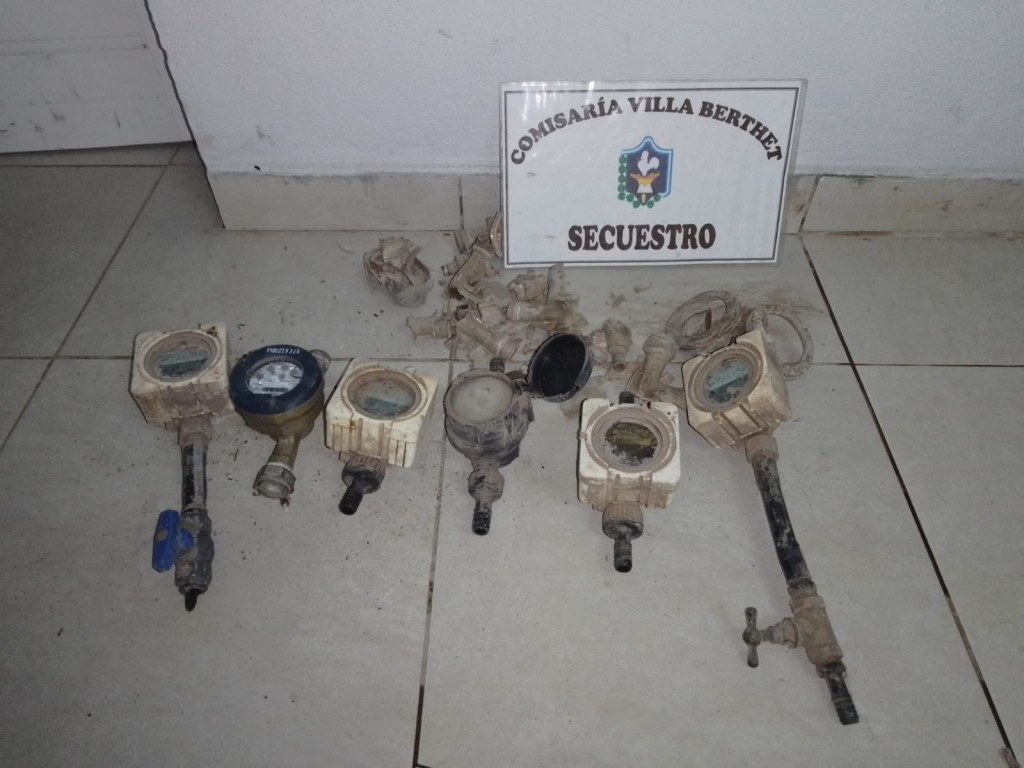 Los efectivos policiales de la localidad de Villa Berthet toman conocimiento este miércoles, en horas de la tarde por parte del encargado de SAMEEP que, en el Barrio 80 Viviendas habían robado varios medidores de agua durante la madrugada. Los agentes rápidamente realizan la investigación pudiendo establecer los autores del hecho y su aprehensión.