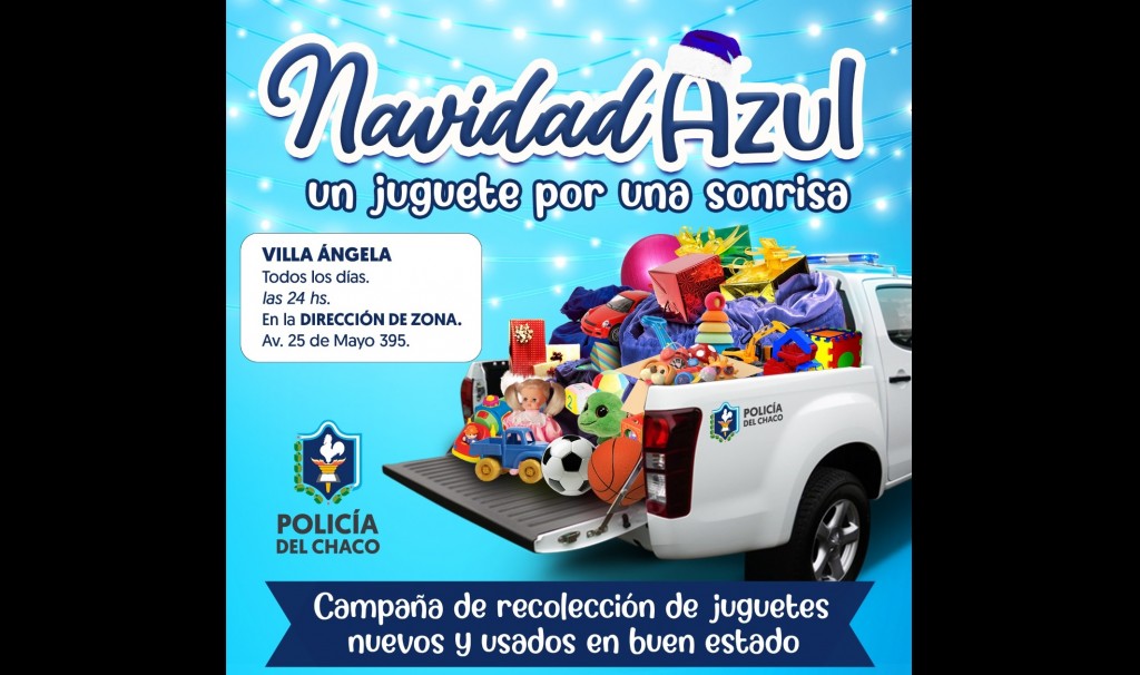 “…Es una iniciativa de nuestra jefatura de policía a la cual se denominó NAVIDAD AZUL, que consistía en juntar juguetes, nuevos y usados y hacerles llegar a los chicos que más necesitan…”, dijo el Comisario Mayor Dominguez.