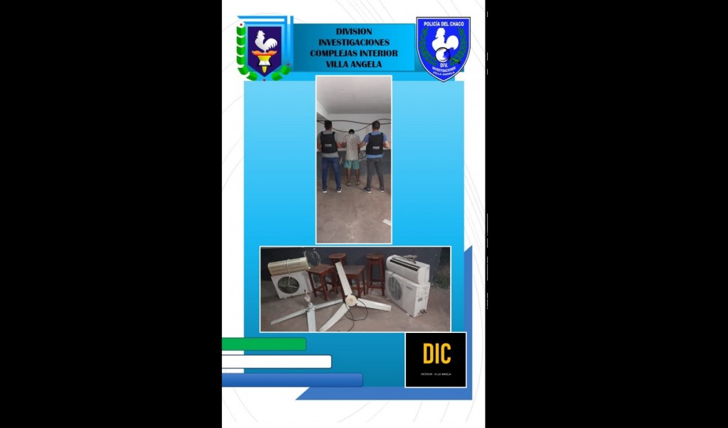 Villa Ángela: RECUPERAN AIRES ACONDICIONADOS, VENTILADORES Y OTROS ELEMENTOS | ES DETENIDO UN JOVEN DE 23 AÑOS CON FRONDOSOS ANTECEDENTES