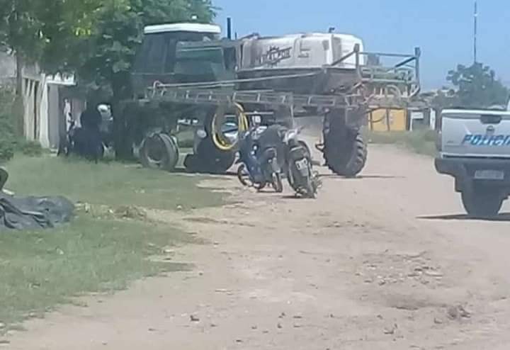 Rápidamente el personal policial se constituyó al lugar constatando la veracidad de lo que había sido información, siendo participes una máquina agrícola tipo mosquito, guiada por un ciudadano de 48 años y una motocicleta marca Rouser 125 color negro, conducida por una ciudadana de 40 años que iba acompañada de un ciudadano de 21 años, ambos resultaron lesionados, por lo cual fueron trasladados al hospital local, dónde el doctor de turno informo que la conductora de la moto habría fallecido por traumatismo de cráneo con perdida encefálica y que el acompañamiento presentaba traumatismo de cráneo por lo cual fue derivado al hospital Salvador Masa de Villa Ángela.