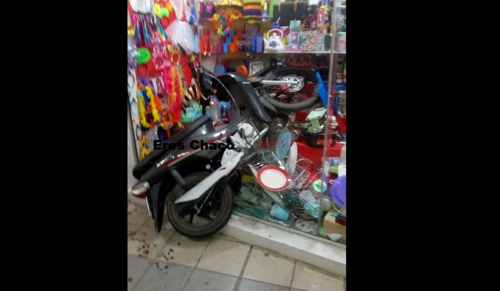 La joven perdió el control de su rodado e impactó contra el local. Debió ser trasladada al hospital 4 de Junio de Sáenz Peña, por algunas lesiones.