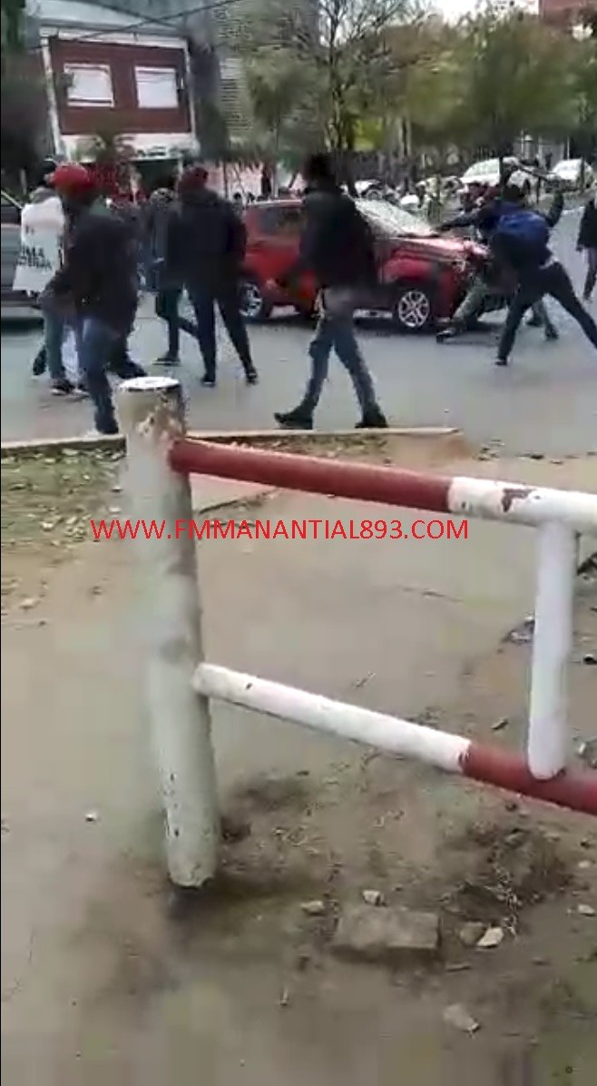 LAMENTABLE: En los videos se pueden apreciar, como destrozan un vehículo de color rojo en una intersección en donde se encontraban realizando un piquete.