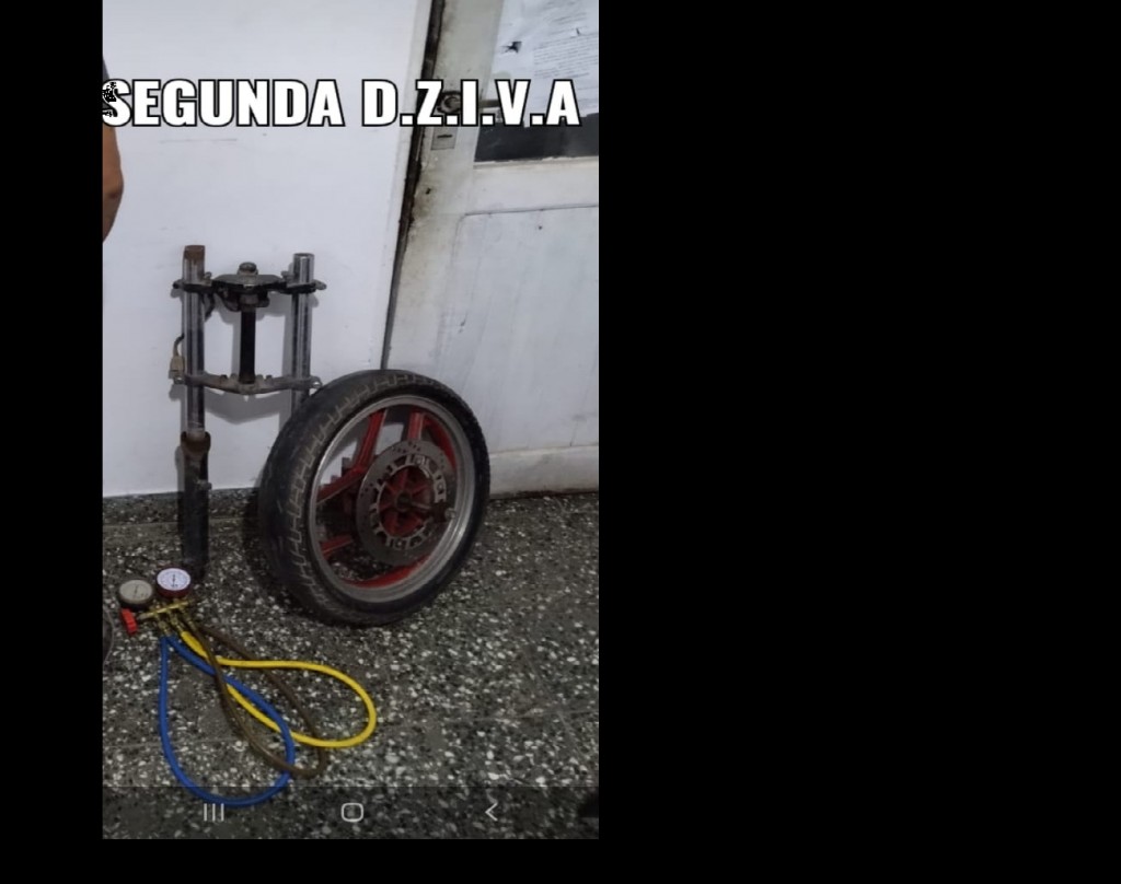 Los agentes policiales lograron conversar con un ciudadano de 31 años, quien al darse cuenta de la presencia policial en el lugar hizo entrega deliberadamente de 1 moledora, rueda y horquilla completa de una motocicleta Kawasaki, 1 pala de punta, 1 rastrillo y manómetros de carga de gas.