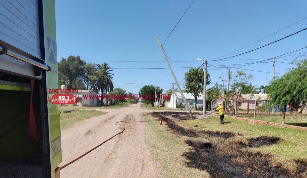 El fuego comenzó a afectar la base de un poste de madera del tendido eléctrico, es por eso que los efectivos rápidamente procedieron a la extinción del foco ígneo, mediante arrojo de agua a presión proveniente de línea de ataque con manga de 32 mm. evitando la propagación y logrando extinguir las llamas.