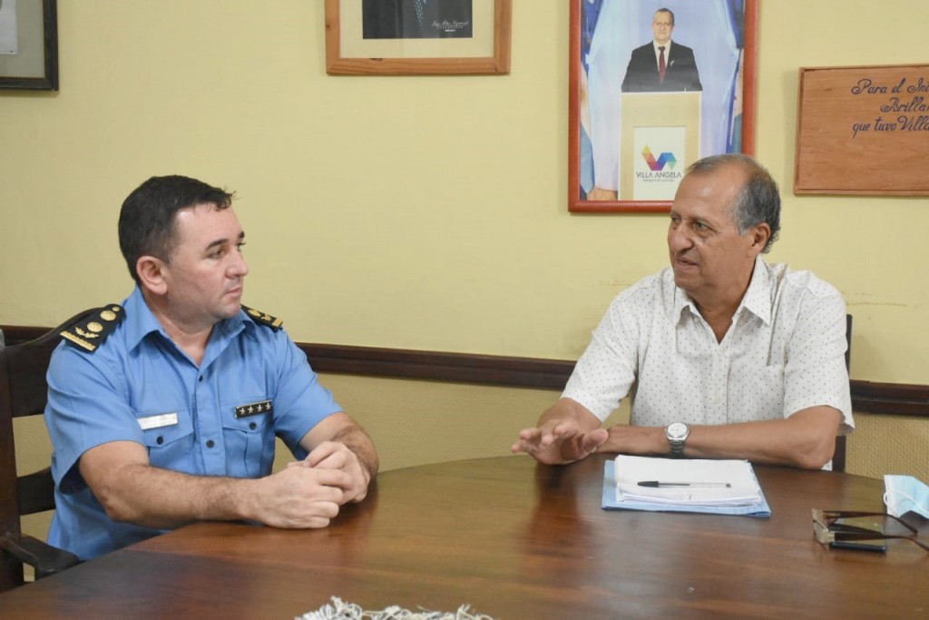 El intendente de Villa Ángela, ing. Adalberto Papp, esta mañana, recibió en su despacho al nuevo director de Zona Interior de la Policía, Comisario Mayor César Ramón Niz a efectos de darle la bienvenida a la ciudad y brindarle el apoyo institucional necesario para trabajar en conjunto en beneficio de la comunidad.