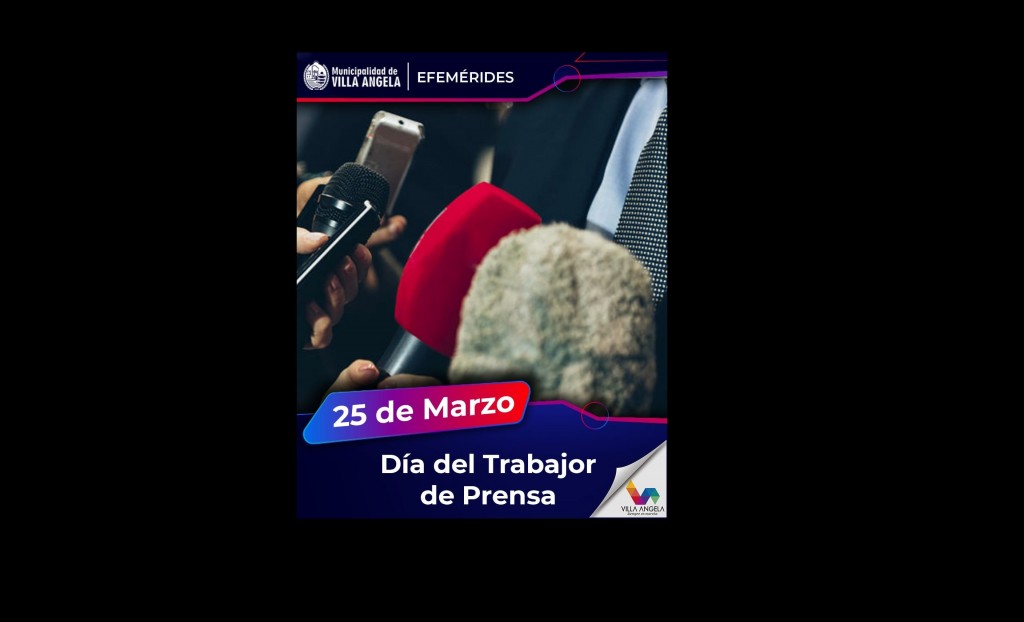 La Municipalidad de Villa Ángela saluda a todos los trabajadores de prensa villangelenses en el marco del Día del Trabajador de Prensa de la República Argentina, establecido en 1944 bajo decreto por el Poder Ejecutivo Nacional, en el Estatuto del Periodista Profesional de la Argentina, inspirado por el Teniente Coronel Juan Domingo Perón desde la secretaría de Trabajo y Previsión.