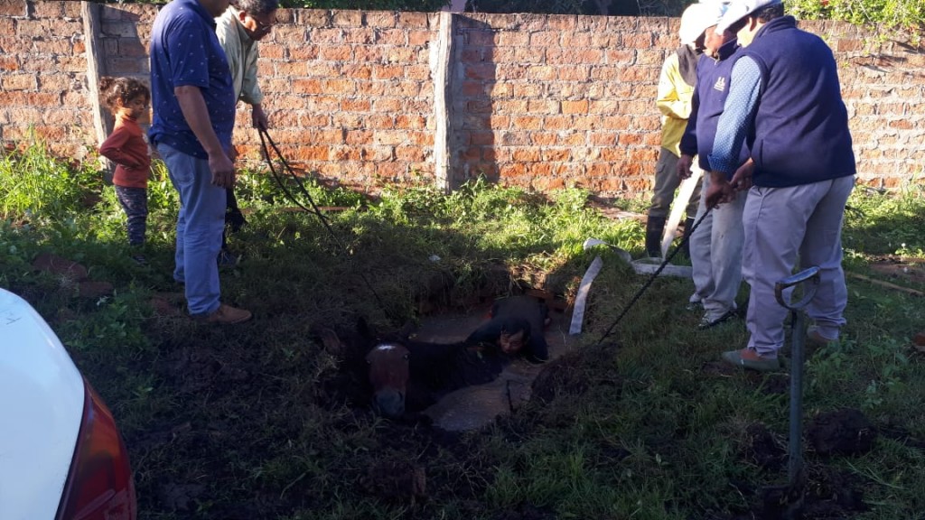 A las 8 de la mañana de hoy, se conoció que en calle San Lorenzo Y Rawson habría un animal equino en el interior de un pozo. Por tal situación partió al lugar una dotación en móvil PT-351 a cargo del Sargento Policial Isaac Severino Slanac.