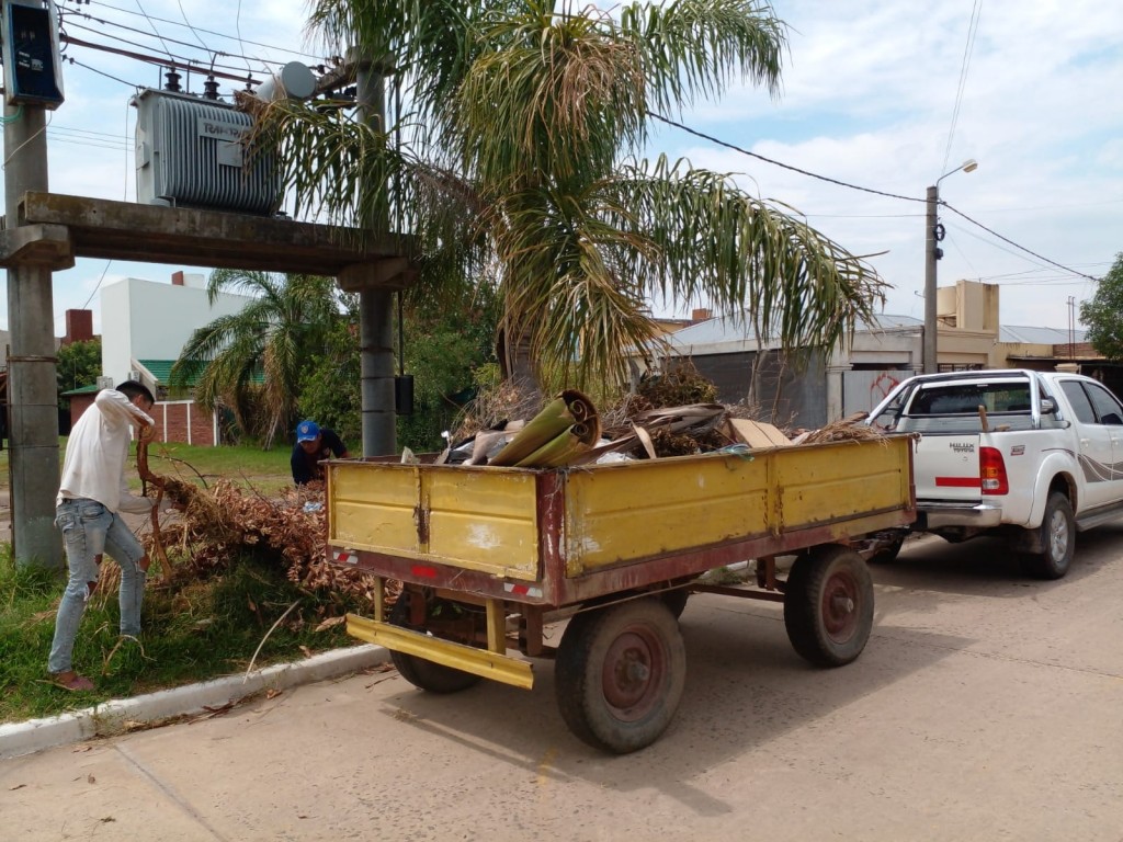 En esta oportunidad, el equipo de trabajo municipal realizó limpieza en inmediaciones de establecimientos educativos y en calles públicas. Asimismo, se llevan a cabo recolección de ramas y residuos en diferentes sectores, y mantenimiento del techo del Palacio Municipal.