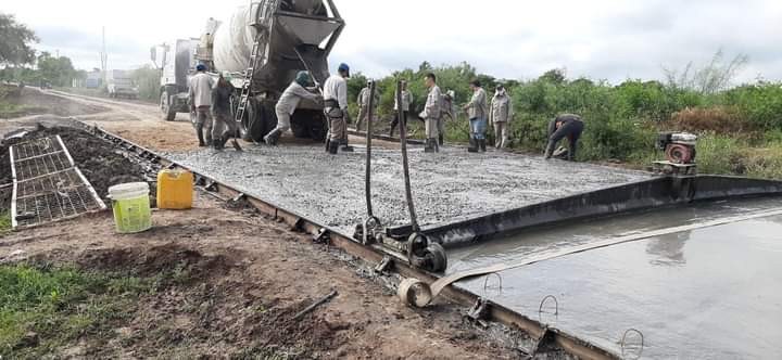 Villa Ángela: AVANZA LA CONSTRUCCIÓN DEL PAVIMENTO DEL SEGUNDO TRAMO DE CALLE MONTEAGUDO