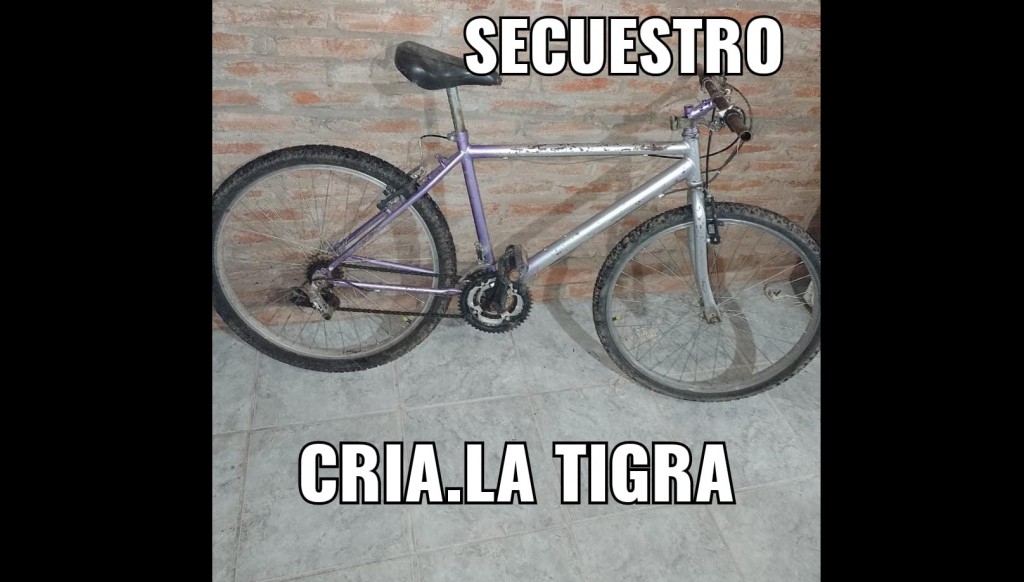 En la noche del domingo 17 a las 00:30 aproximadamente, un ciudadano de 26 años informo mediante llamada telefónica la faltante de su bicicleta desde su domicilio, la misma es de color gris con violeta, sin marca visible, con asiento de color negro.